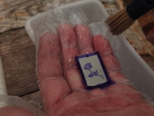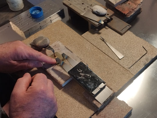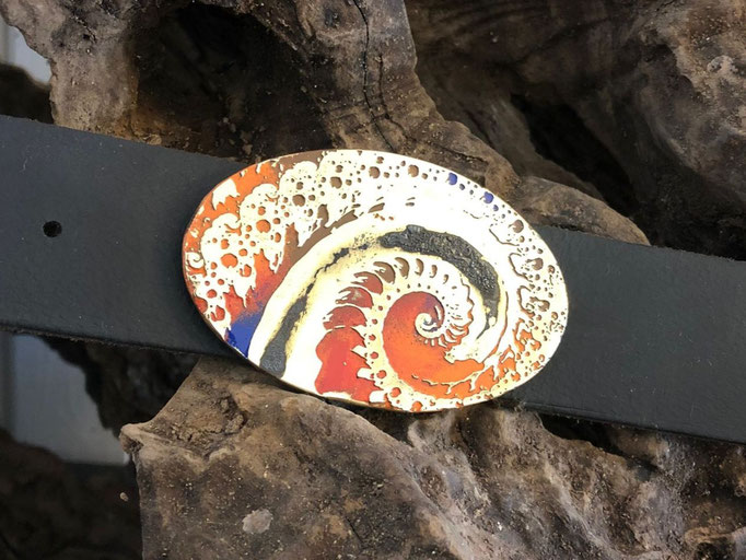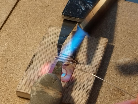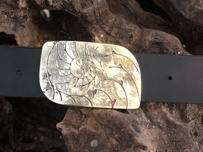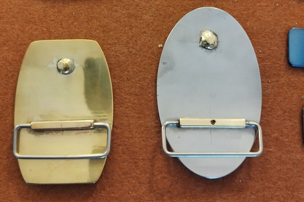 Nach dem Ätzen werden bei Gürtelschnallen die Aufnahmen für den Gürtel auf der Rückseite hartgelötet. Im letzten Schritt wird gereinigt, poliert und je nach Kundenwunsch emailliert oder eine Farbgebung angewandt.